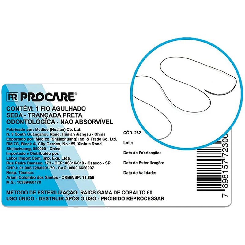 Material de ConsumoFio de SuturaFio Sutura Procare Seda Trançada 3-0 Agulha 17mm 3/8 - unidade