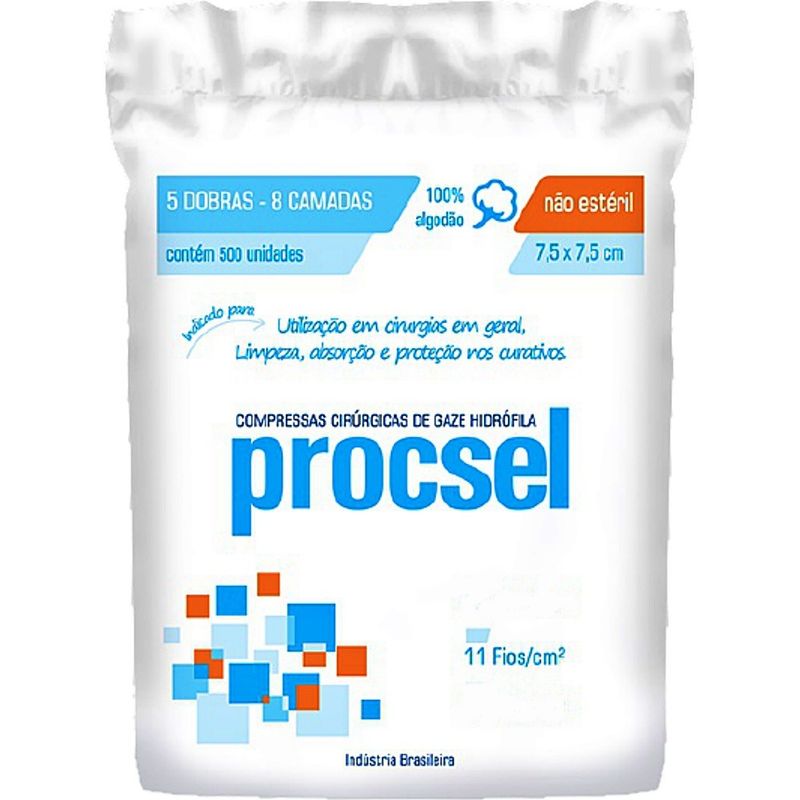 Compressa Cirúrgica Gaze Procsel 11fios 7,5x7,5cm - 500 unidades